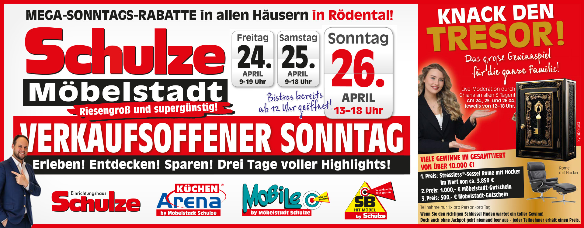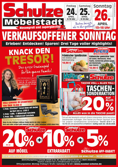 Herzlich willkommen in der Schulze Möbelstadt – das einzigartige Einrichtungszentrum in Rödental (Bayern). Sie finden bei uns vier große Möbelhäuser an einem Platz. Jedes Haus ist auf seine Art ein Wohnerlebnis mit eigener Atmosphäre und vielfältigen Wohnideen. Alles zum Anfassen und Erleben. Vertrauen Sie sich unseren Wohnprofis an. Mit geschickter Planung und kreativen Ideen finden Sie die optimale Wohnlösung für Ihr Zuhause. Ist Ilmenau in Thüringen für Sie besser zu erreichen? Dann besuchen Sie uns dort. Die Schulze Einrichtungshäuser bieten die größte Auswahl zwischen Erfurt und Bamberg.