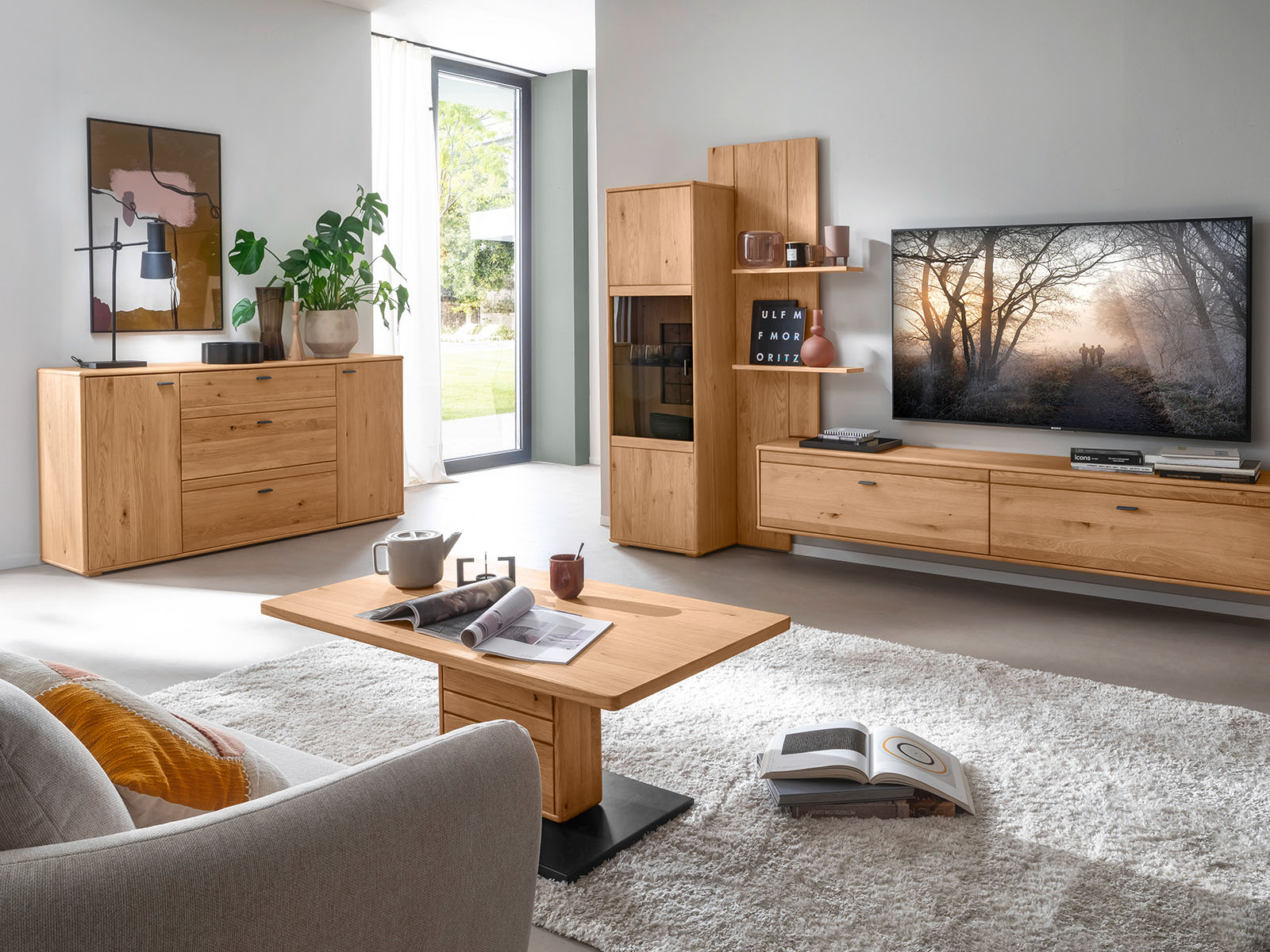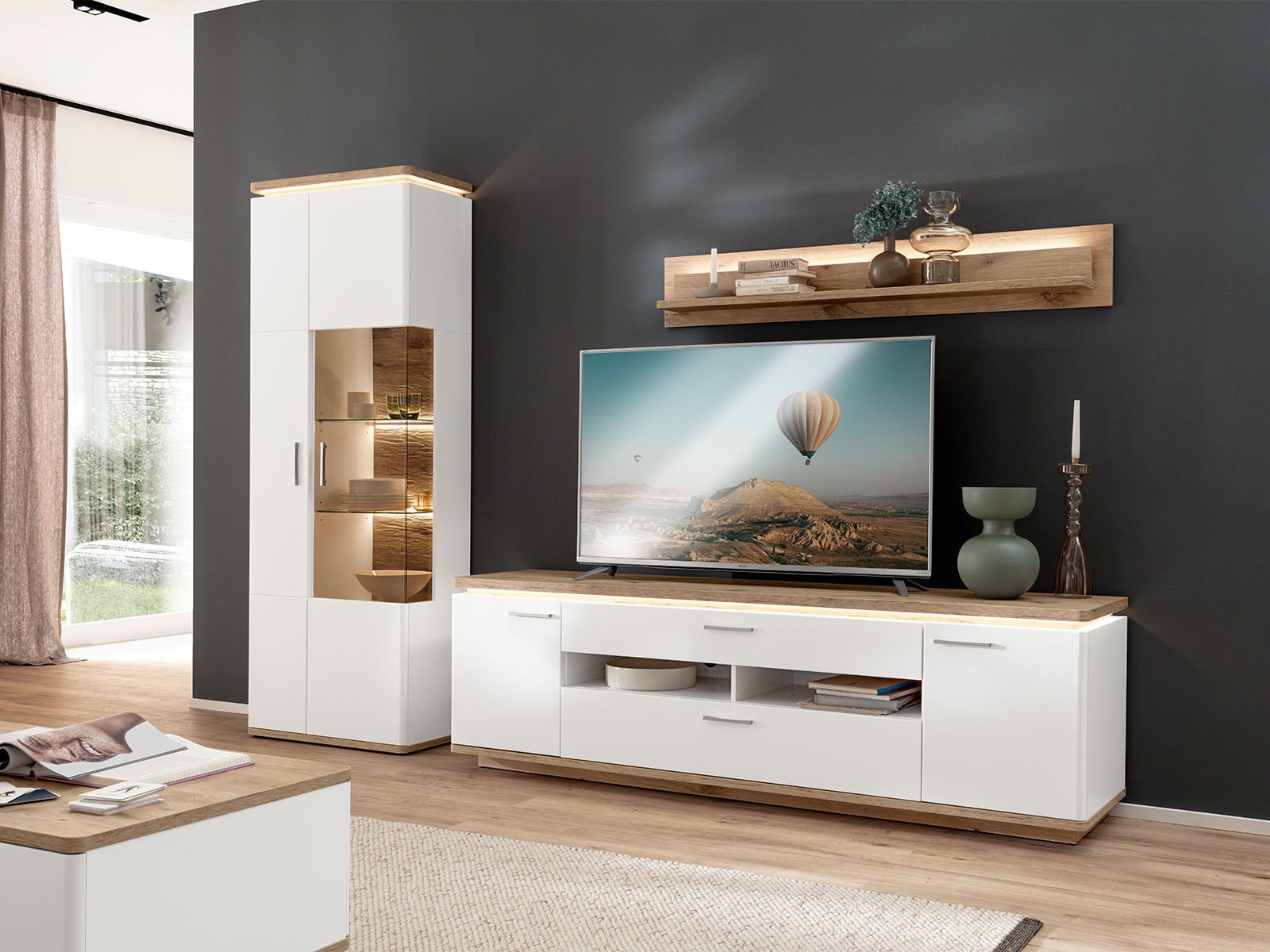 Natürliches Wohnen im modernen Design Gezeigtes Einrichtungsbeispiel Wohnkombination | jetzt 1.799.-€ Sideboard…