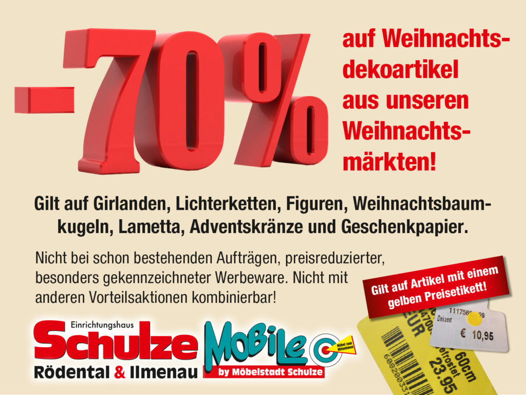 TIPP: 70% Rabatt auf Weihnachtsdekoartikel auf unserem Weihnachtsmarkt