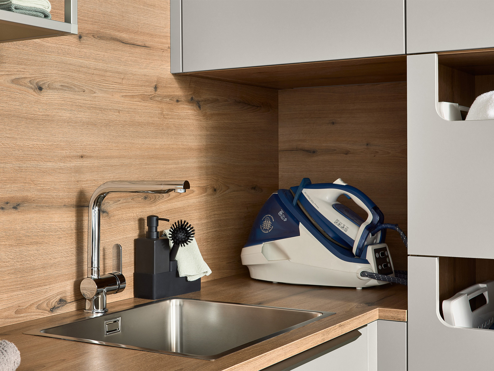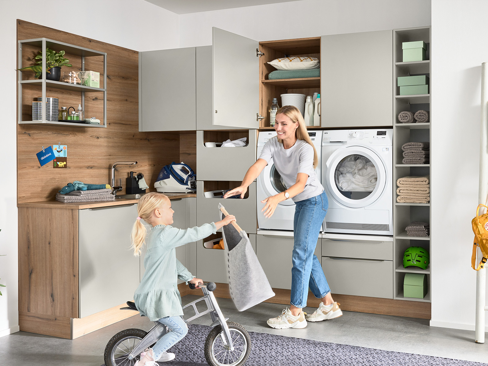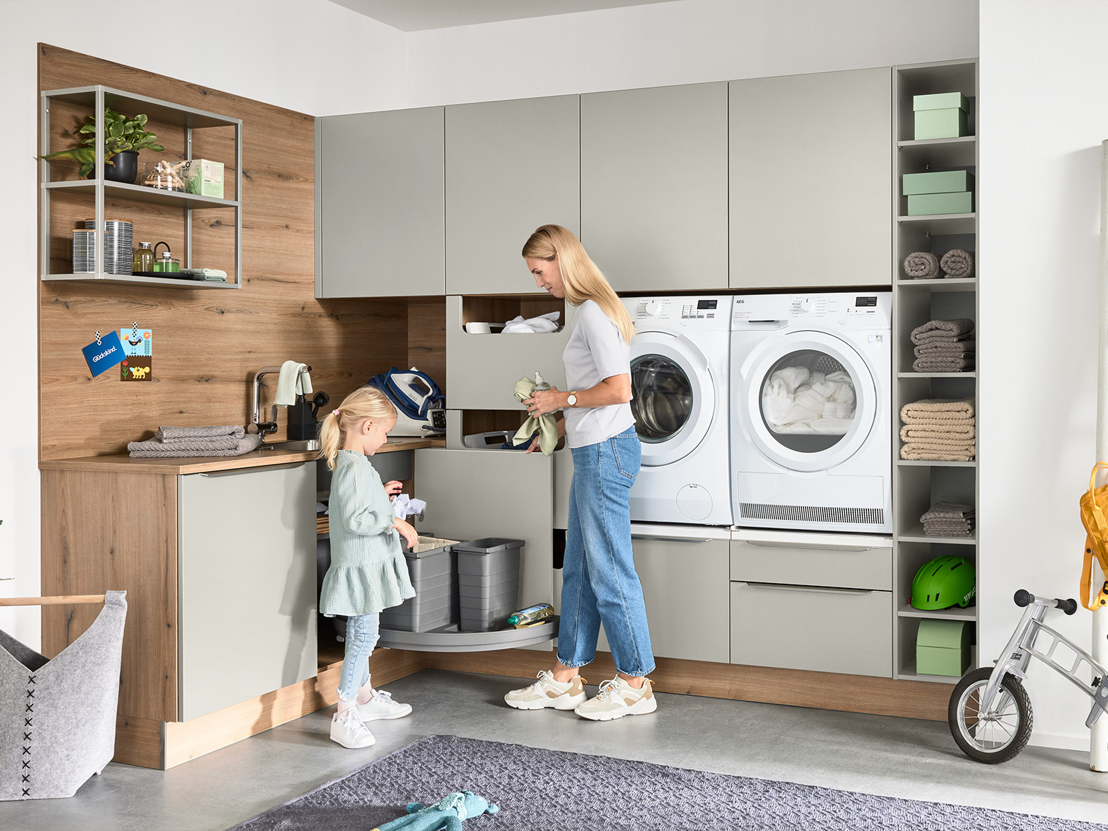 Dieser Hauswirtschaftsraum ist individuell umplanbar und erweiterbar und wird als Einzelanfertigung für Sie bestellt.