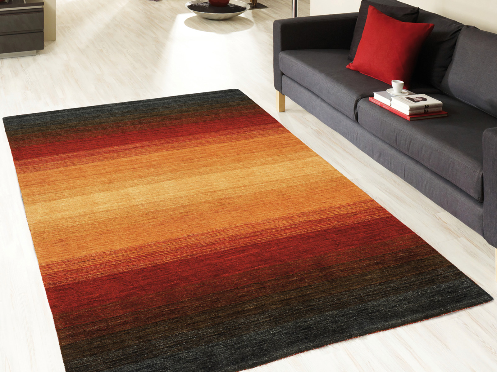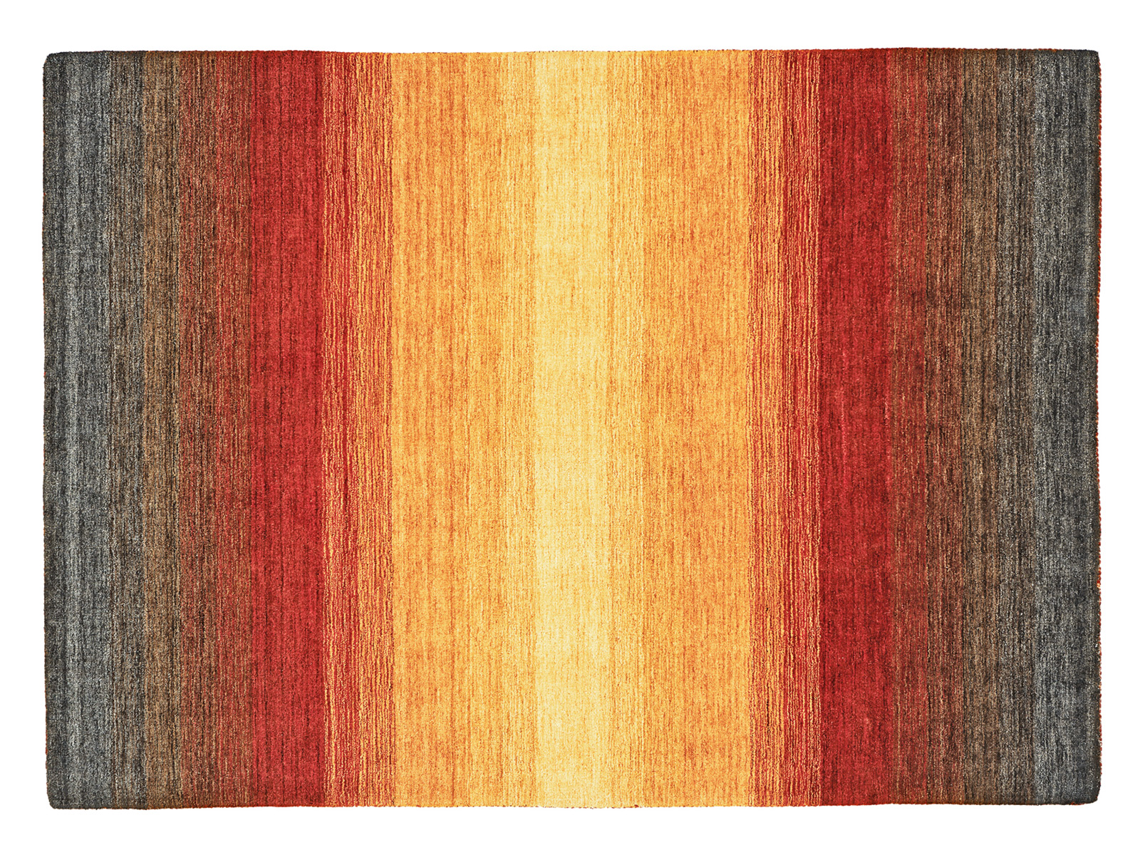 Wie ein romantischer Sonnenuntergang am Meer erstrahlt dieser Teppich im warmen Farbverlauf.