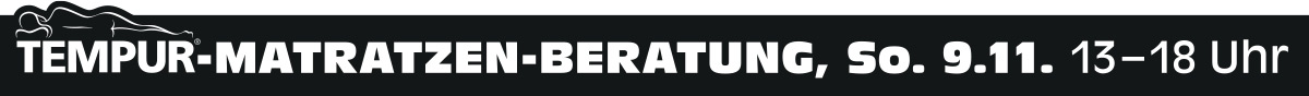 *Bis zu 20% Rabatt auf Möbel und Küchen: Gilt auf alle Neukäufe/neu geplanten Küchen auf alle Holzteile und auf unsere Listenpreise. Nicht bei schon bestehenden Aufträgen, preisreduzierter, besonders gekennzeichneter Werbeware und Vorteilskombinationen in unserer Ausstellung, Ware aus dem aktuellem Prospekt, Zubehör, Ersatzteile, Nähservice, Einkaufsgutscheine, Elektrokleingeräte sowie Serviceleistungen, Sonderbestellungen, Dienstleistungen, Gartenmöbeln und Artikeln der Firmen Tempur, Hasena, Sensoflex, Team 7, Nolte G., Birkenstock, Röwa, Leonardo living, Rolf Benz, Jensen, Ruf Betten, B-Collection, Interliving, Kare, Roomio, Dayco, iRest, 18Hundert, Stressless® und Ballerina. Nicht mit anderen Vorteilsaktionen kombinierbar.